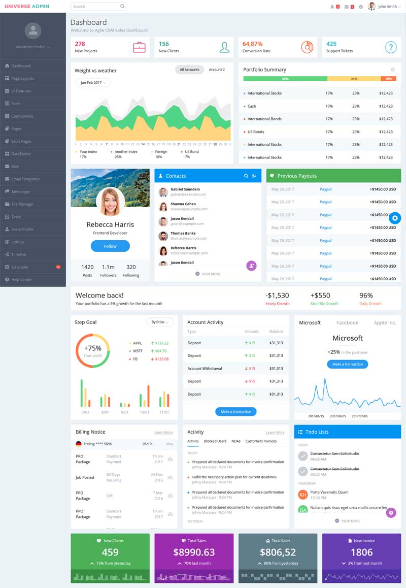 一个功能齐全的高级Web应用程序管理后台模板,内置了Twitter引导程序jQuery和CSS3。它配备了很多准备建设你的Web应用,CRM,CMS,管理面板,ui模板元件的理想使用,或任何其他类型的应用程序的后端。universeadmin编码高度敏感的为您的手机和平板电脑。完全模块化的许多独特的功能,它将帮助您建立您的下一个实用的模板。 你可以参观引导页找到所有你可以实现universeadmin各部件。文档是全面的,它们包含了所有帮助您开始使用所有组件的文档。(内含:程序模板和html模板)