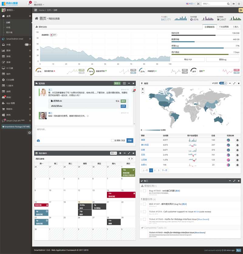 本资源来自:代码 » 后台模板 » 中文版SmartAdmin数据分析后台管理模板