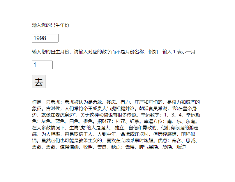 12生肖是中国独有的特色非物质遗产,墨鱼部落格小编收集了一款html出生日期代码,生肖查询计算器模板,该模板界面简洁,根据提示输入出生年月份,即可生成对应的属相和解析。