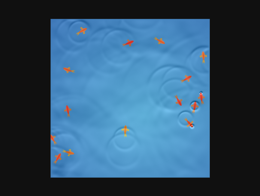 这是一款鼠标水波纹特效,逼真金鱼游动动画效果图,画面中呈现了金鱼游动的动画效果,移动鼠标会产生水波纹特效,简单实用,喜欢的小伙伴不要错过哟。