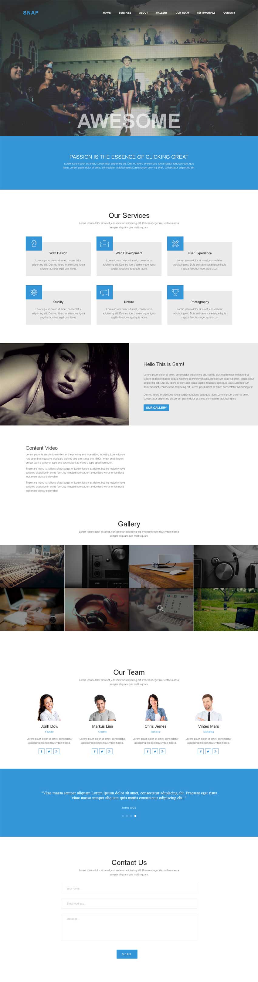 大气宽屏的单页模板,模特公司网站html5模板。
