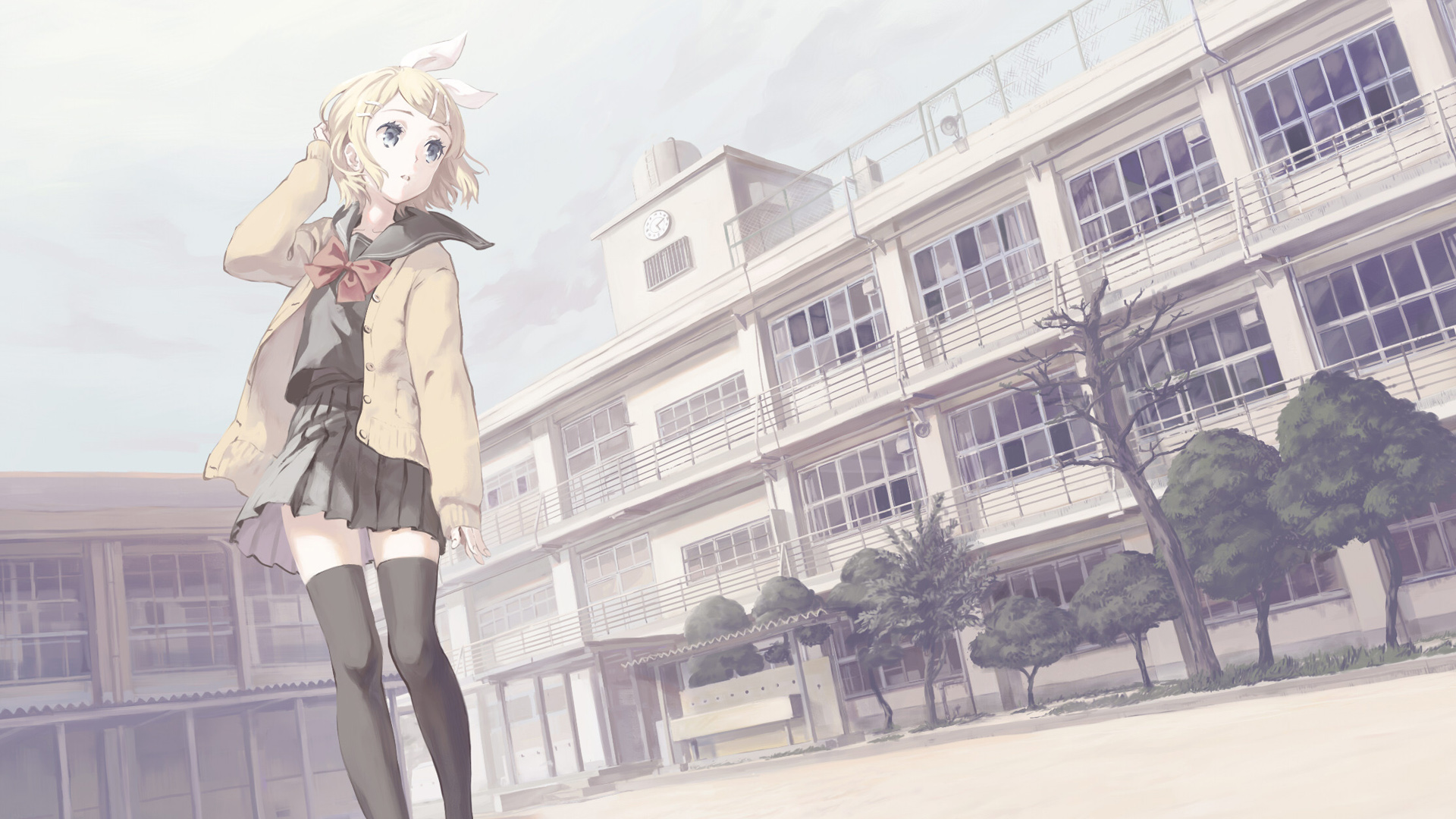 好看动漫女孩黑色连衣裙美腿花建筑高清免费电脑壁纸下载