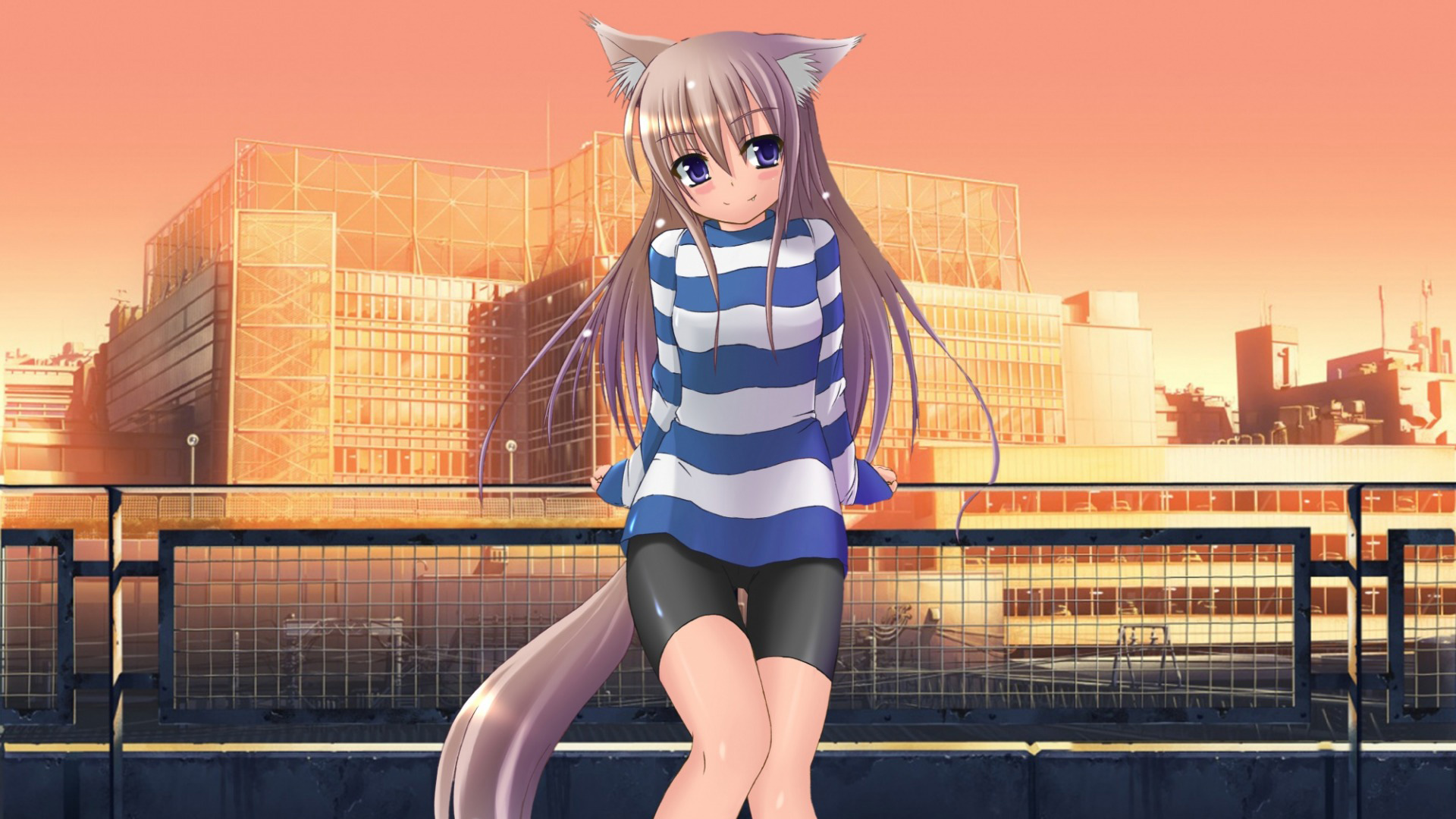 日本动漫可爱女生阶梯风景桌面壁纸 免费电脑壁纸下载