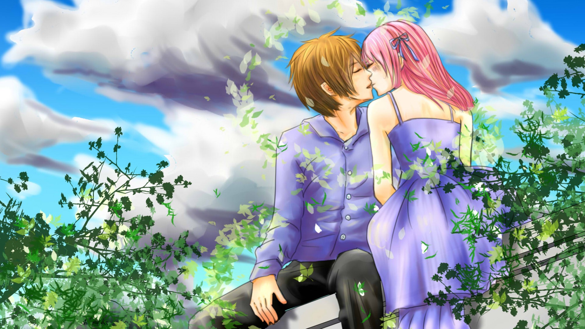 大树单车恋人约会草地浪漫风景动漫免费电脑桌面壁纸下载