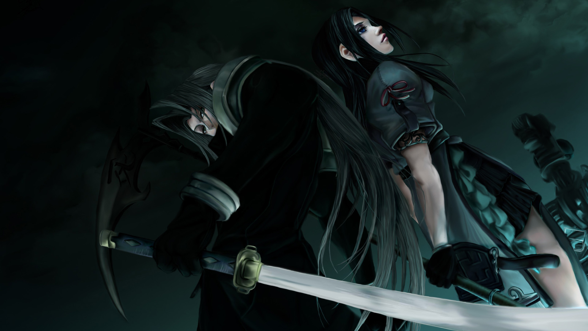 网络朋克风,性感黑色盔甲带武器女孩与3D宇宙飞船CGI电脑壁纸免费下载