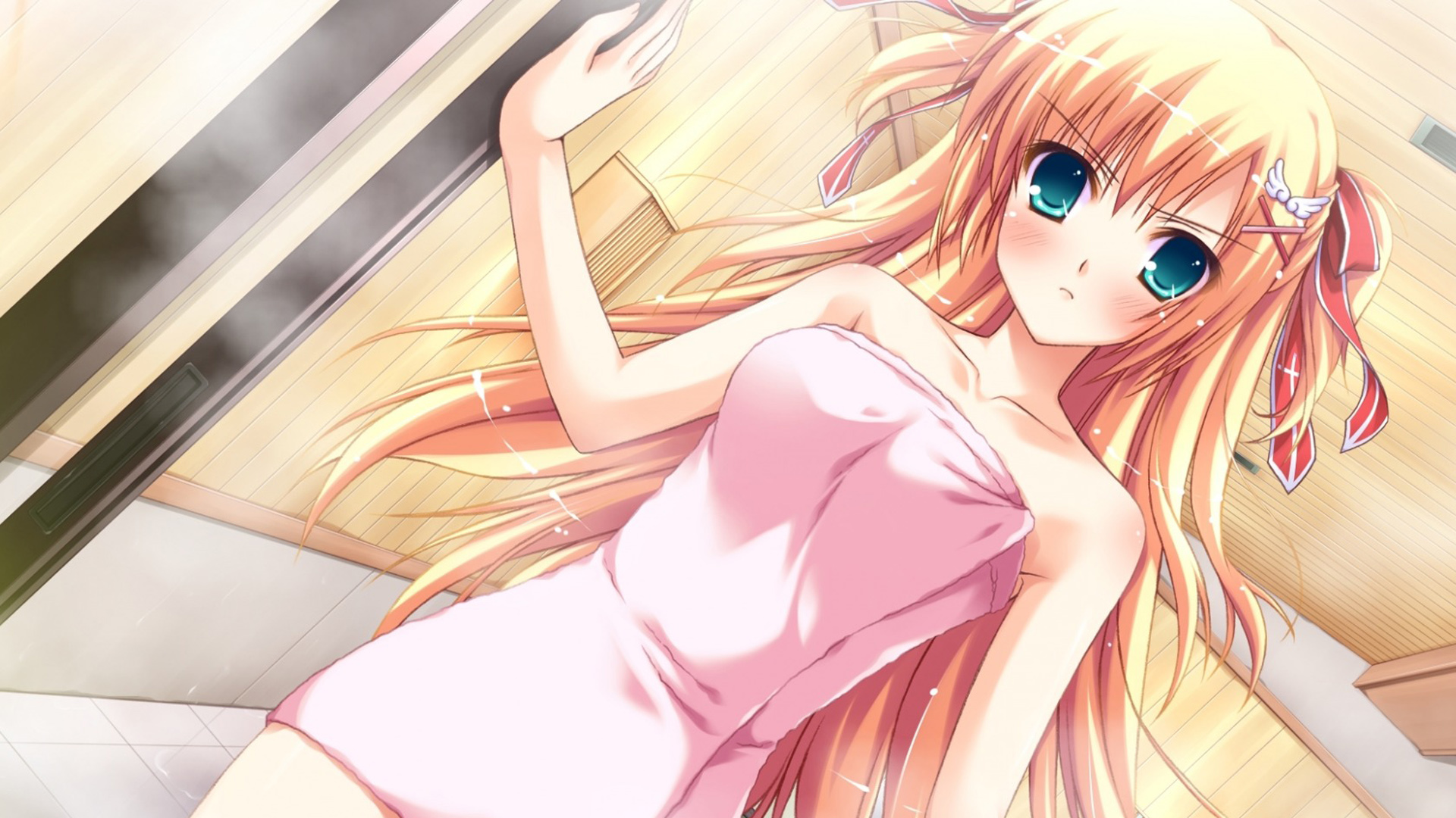 可爱粉色长发蓝色眼睛女孩动漫高清免费电脑壁纸下载