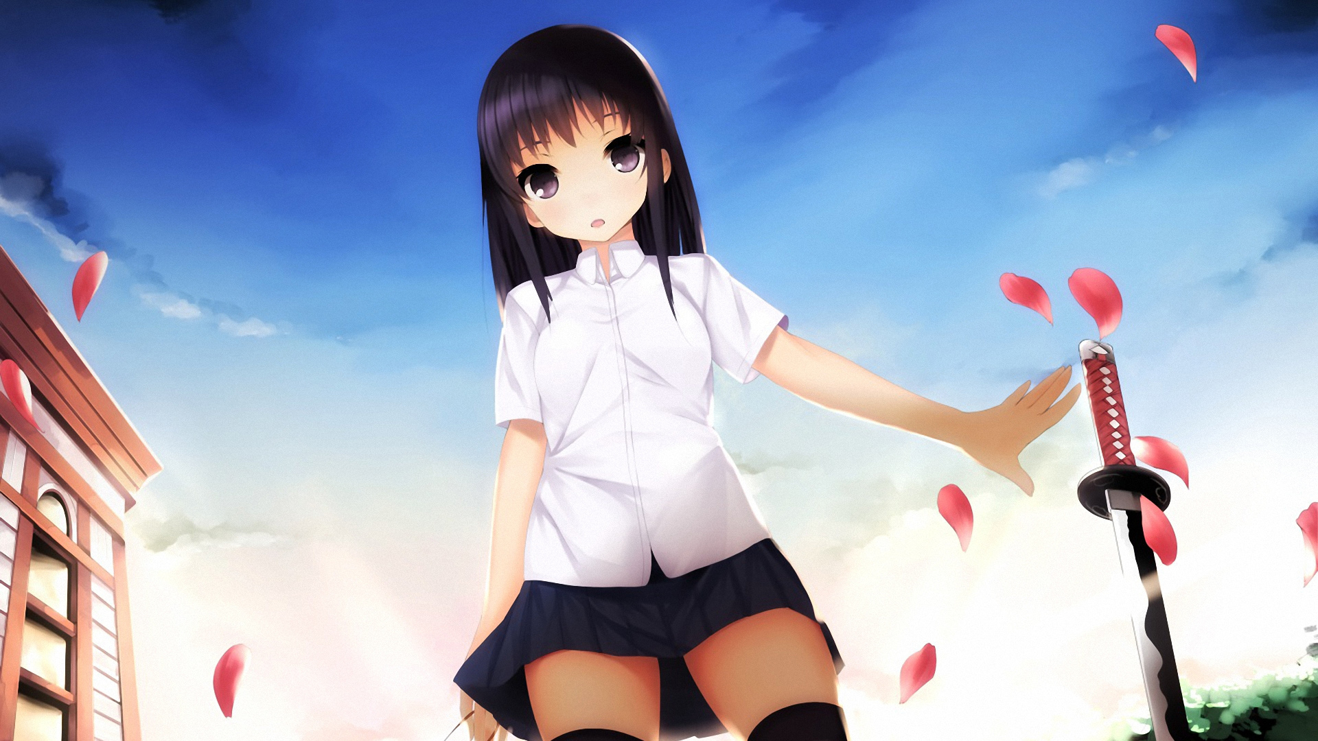 科幻少女时尚背影 高清白色衬衫黑色短裤美腿动漫美女电脑壁纸免费下载