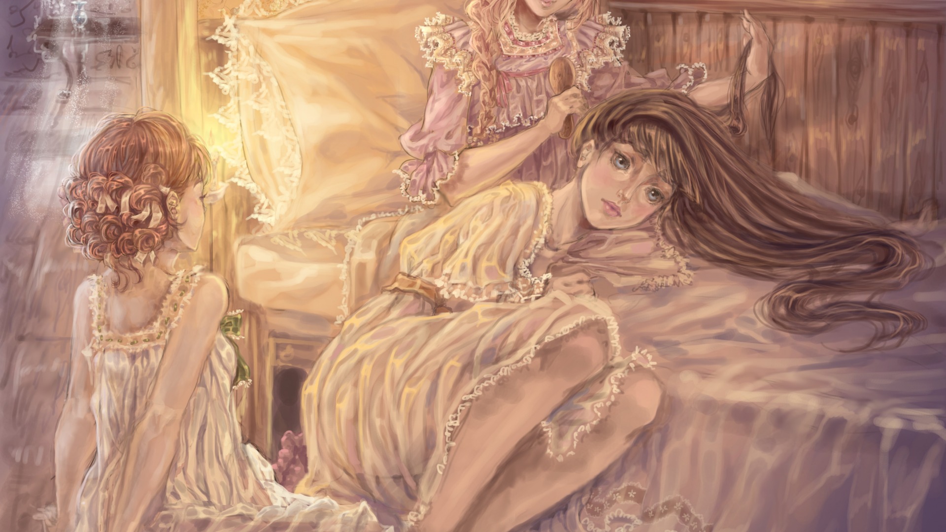 公主粉色长发白色裙子动漫美女免费电脑壁纸下载