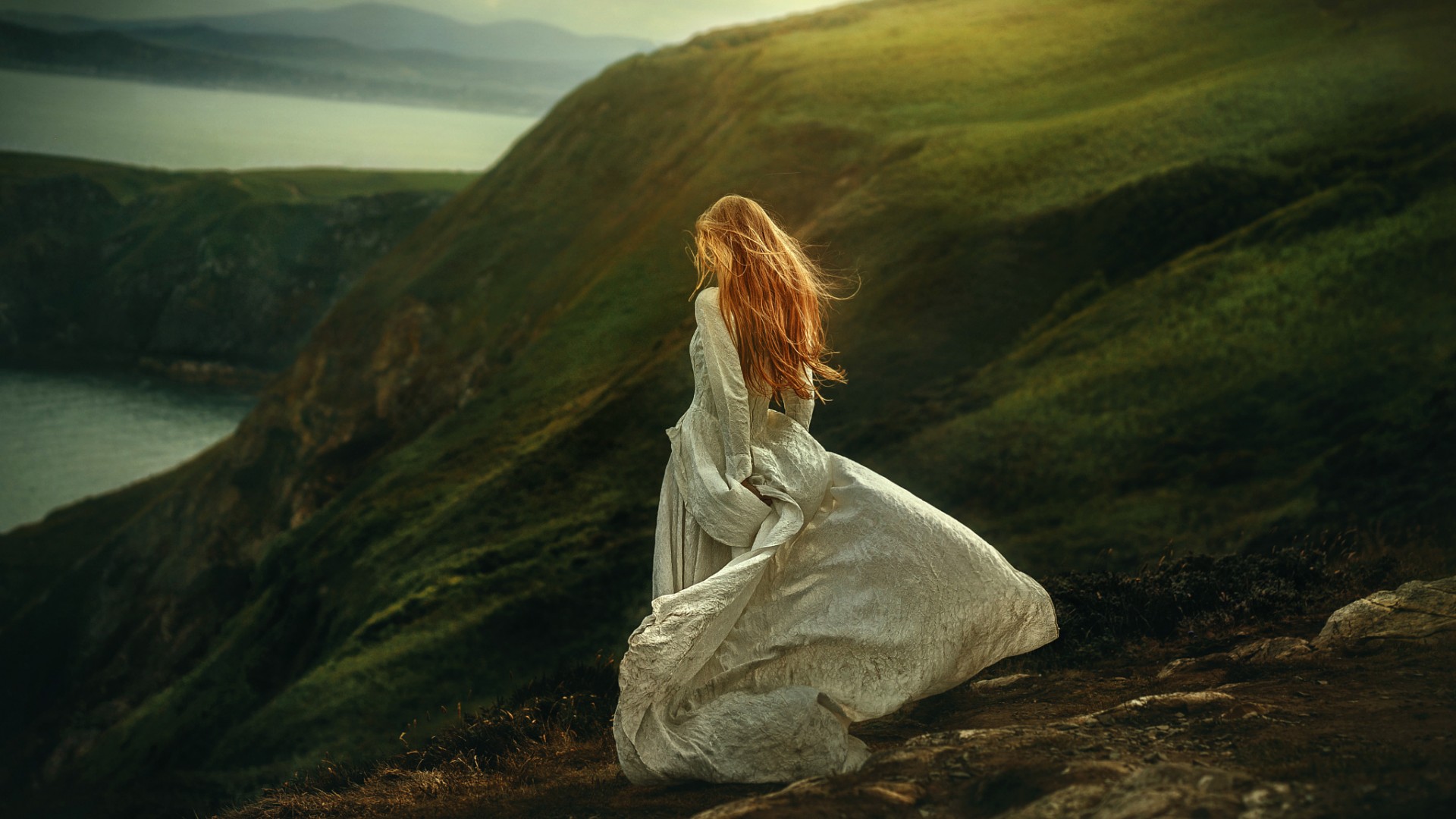 沉默片刻女孩与石头岛屿自然风景唯美意境电脑壁纸免费下载