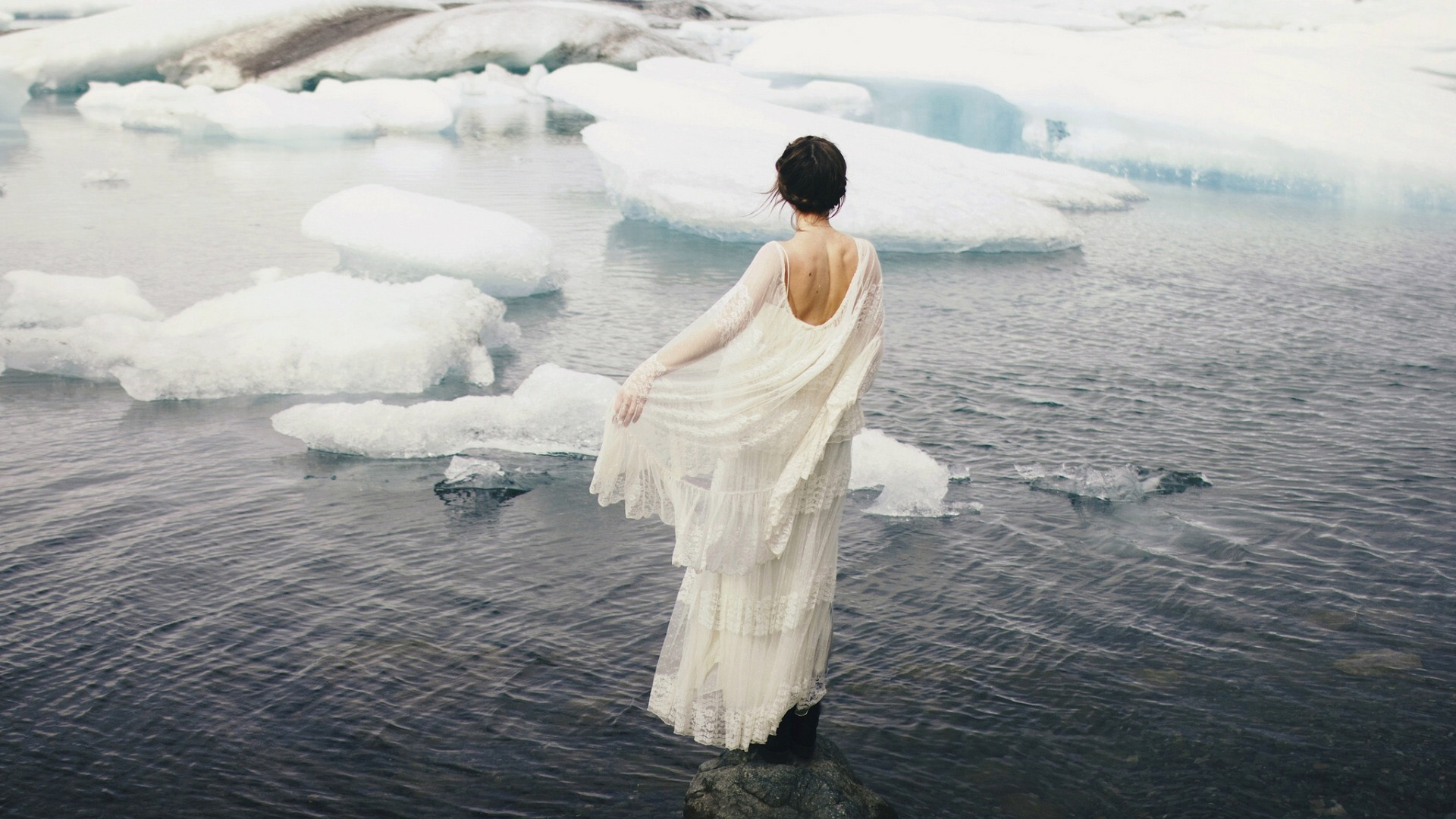 沉默片刻女孩与石头岛屿自然风景唯美意境电脑壁纸免费下载