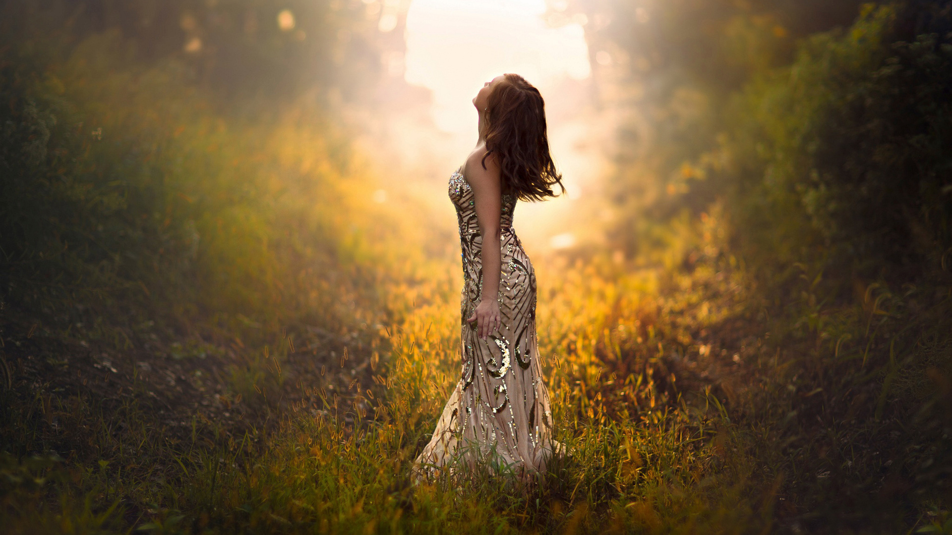 心情女孩黑发与鲜花小清新风景唯美意境电脑壁纸免费下载