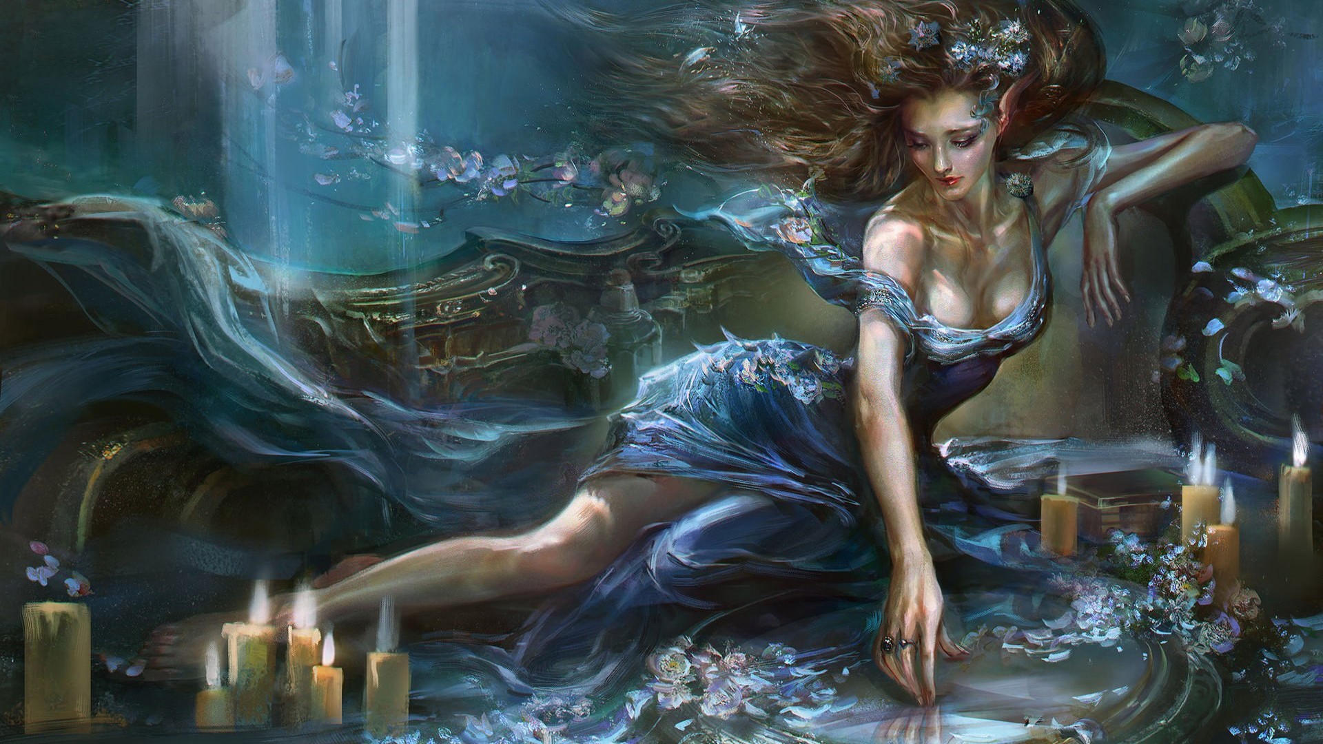 美丽森女长发唯美女孩精美挂件礼服电脑壁纸免费下载