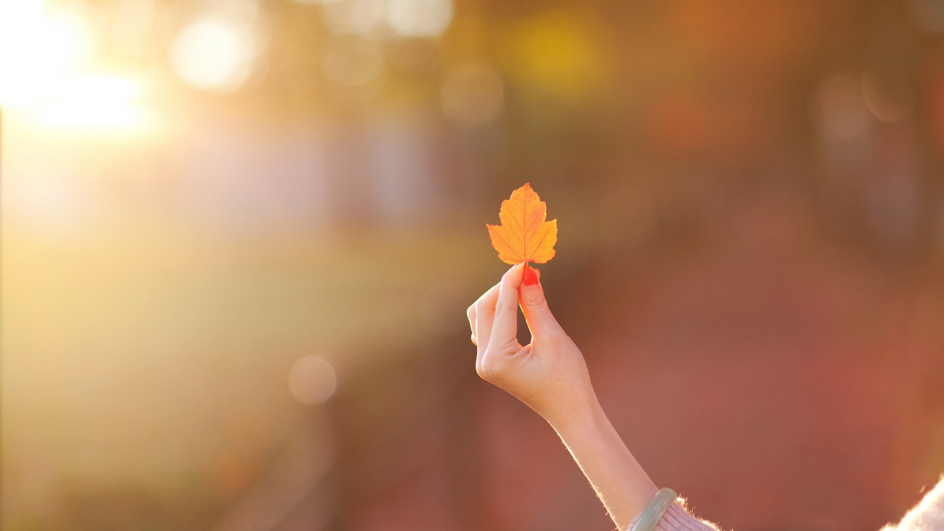 女孩手持树叶心情写真美轮美奂 唯美壁纸免费电脑下载
