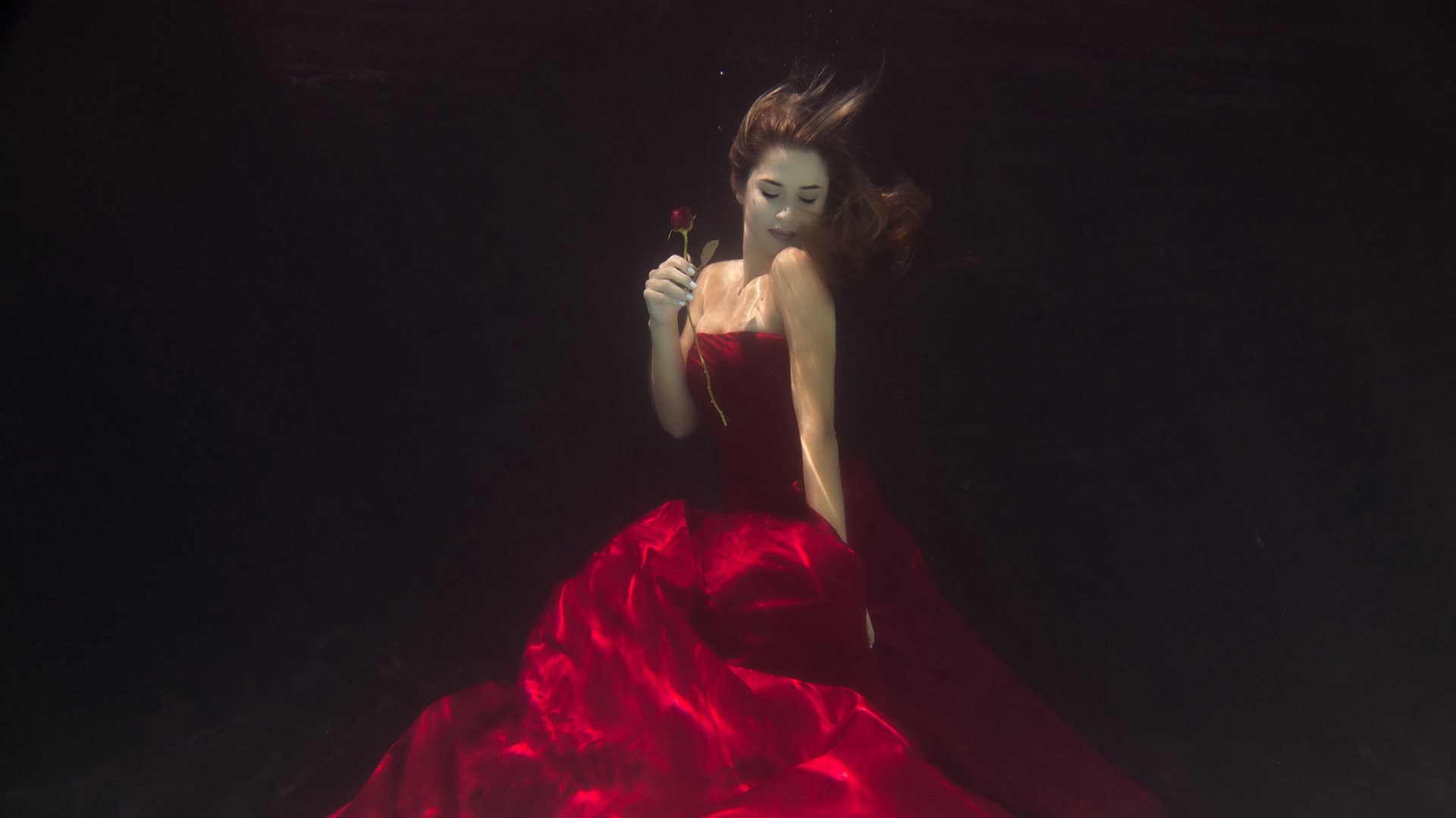 水下红色裙子玫瑰美女唯美意境电脑壁纸免费下载