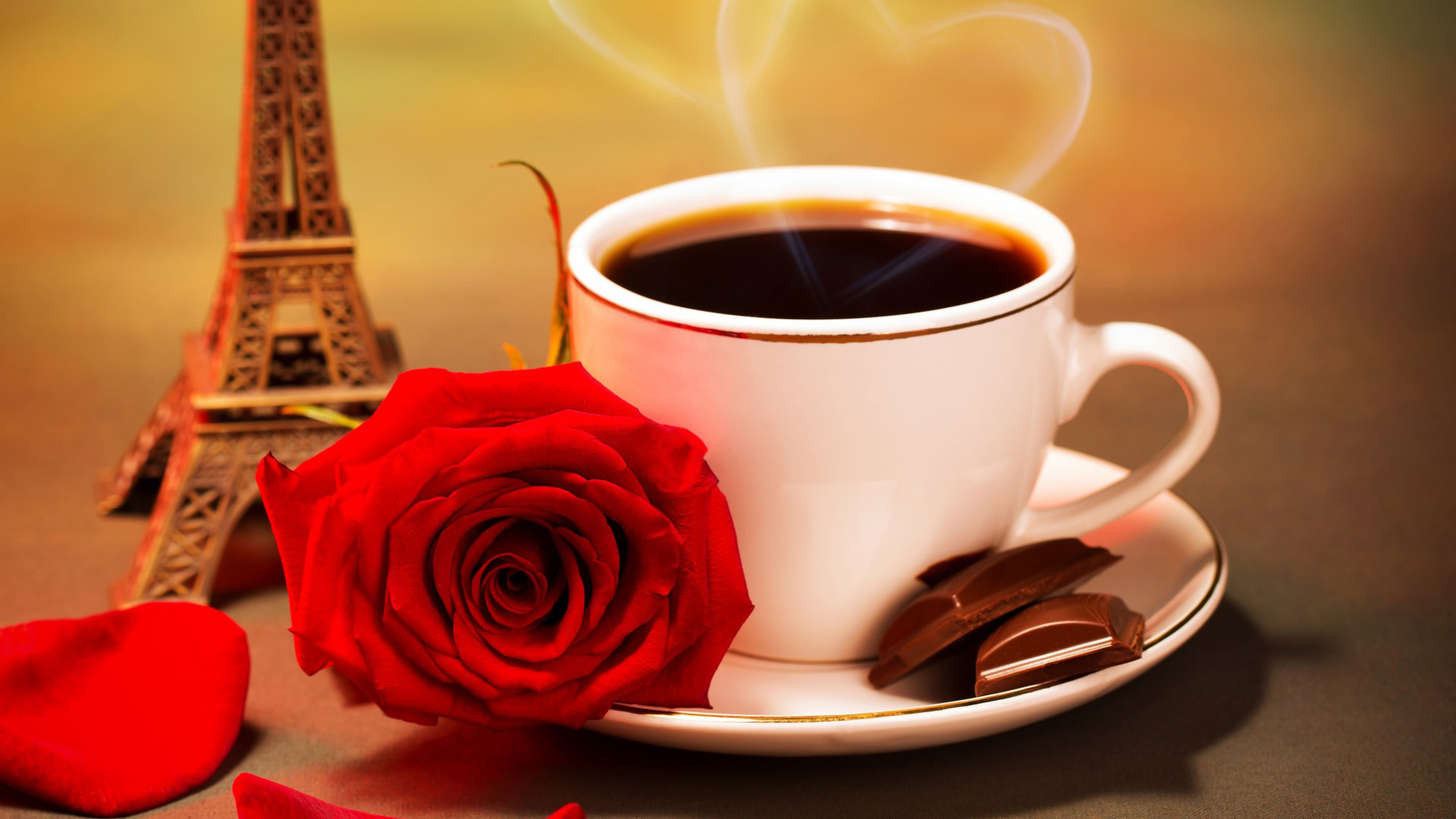 爱情,咖啡,红玫瑰花,埃菲尔铁塔唯美图片,桌面壁纸