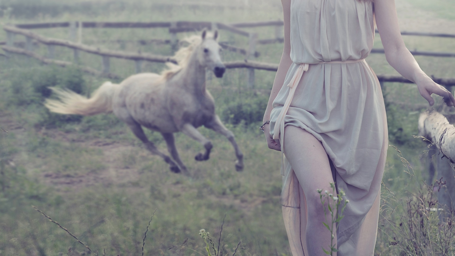 干旱土地背景地面开裂中金发美女长裙唯美意境电脑壁纸免费下载