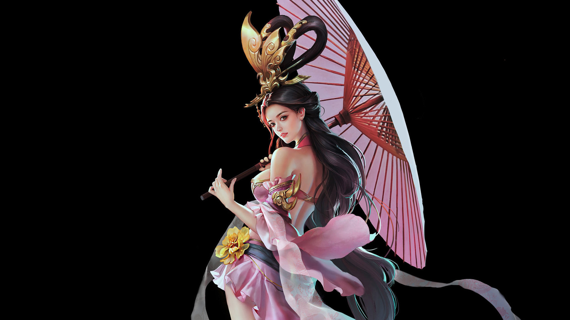 唯美意境女孩背影与树木绘画免费电脑壁纸下载