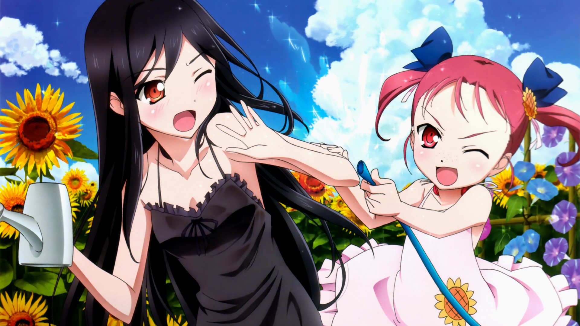 两个女孩初音未来美少女小清新花瓣唯美动漫免费电脑壁纸下载