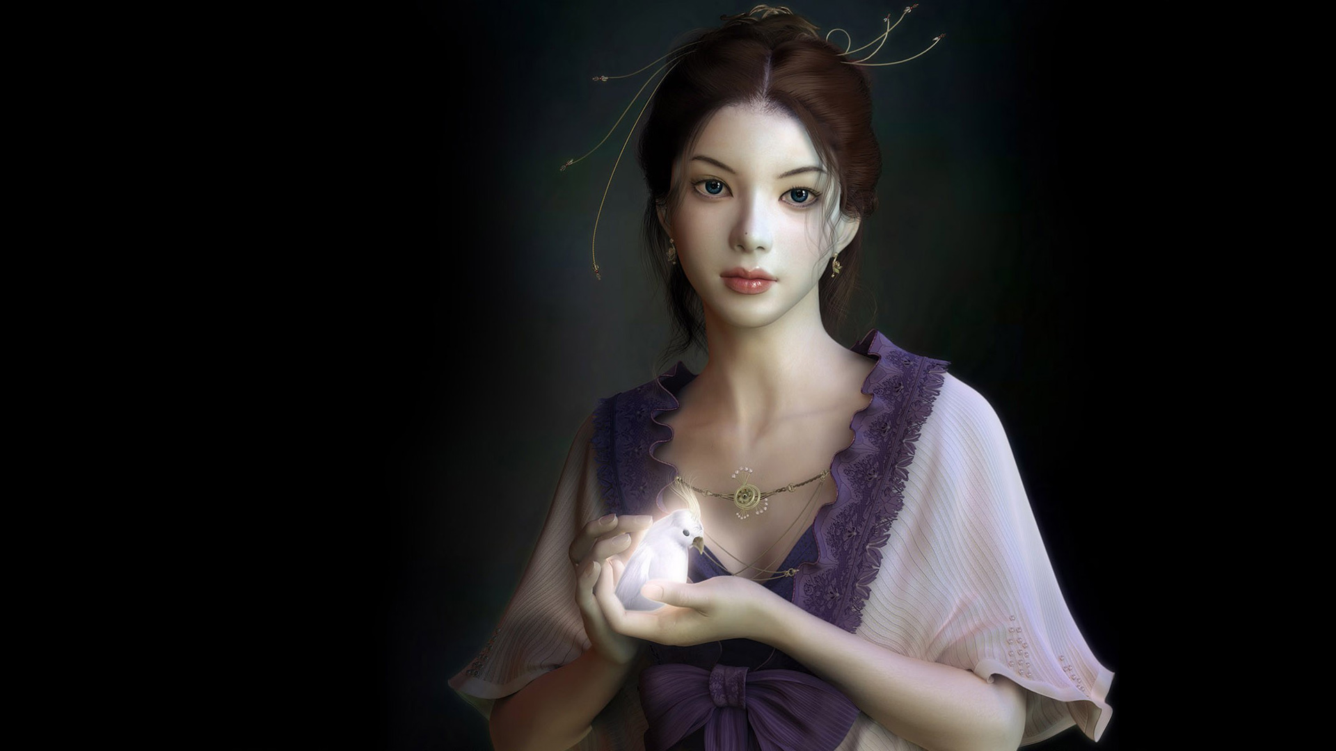 女孩美女与树小松鼠蝴蝶幻想主题唯美免费电脑壁纸下载