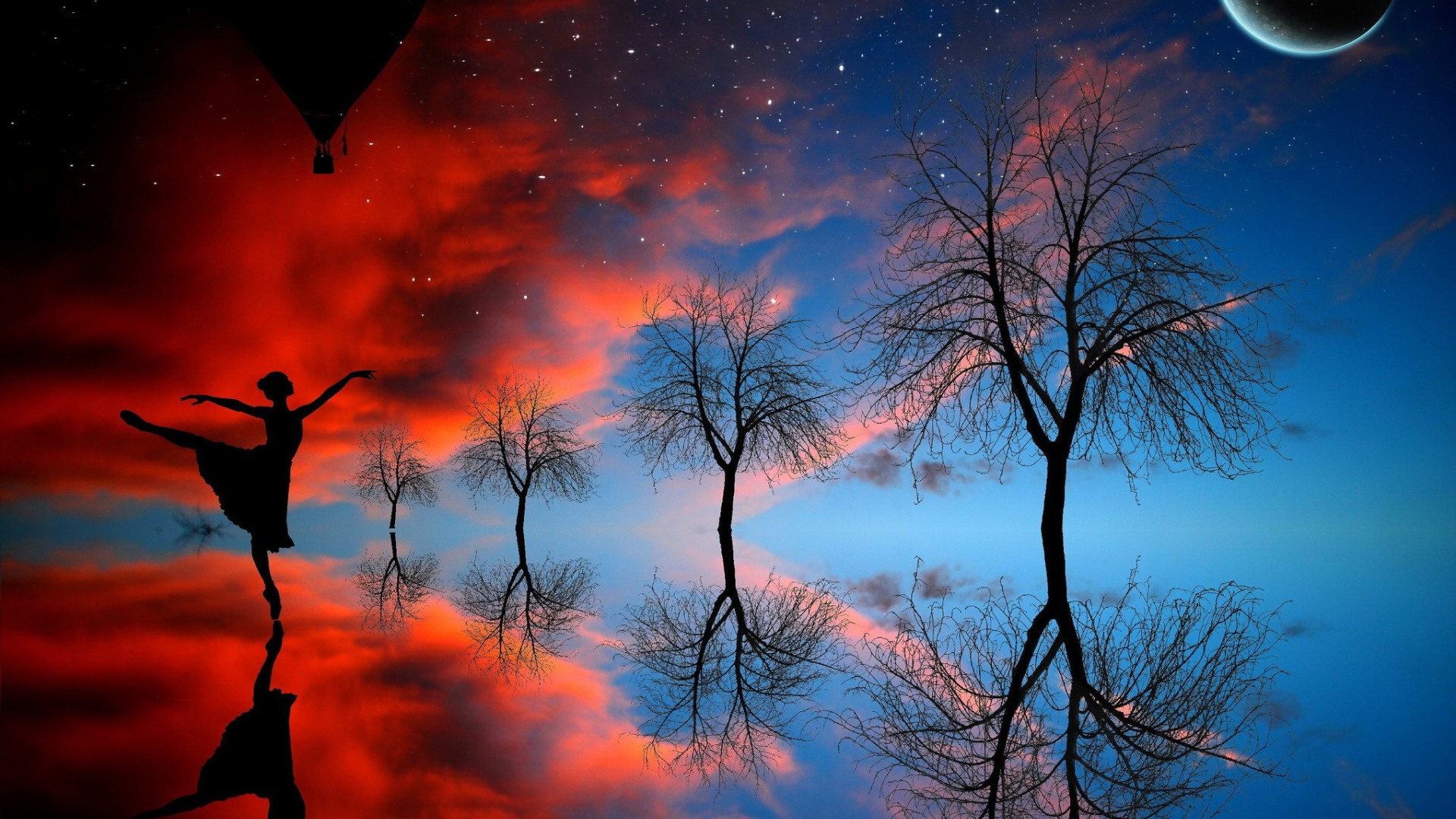 宁静月亮屋顶唯美免费电脑壁纸高清下载