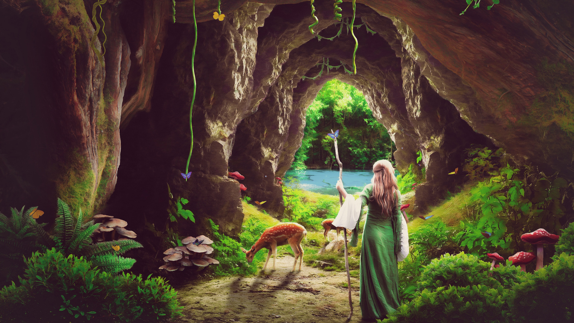 女孩呼吸间 湖光山色唯美意境电脑壁纸免费下载