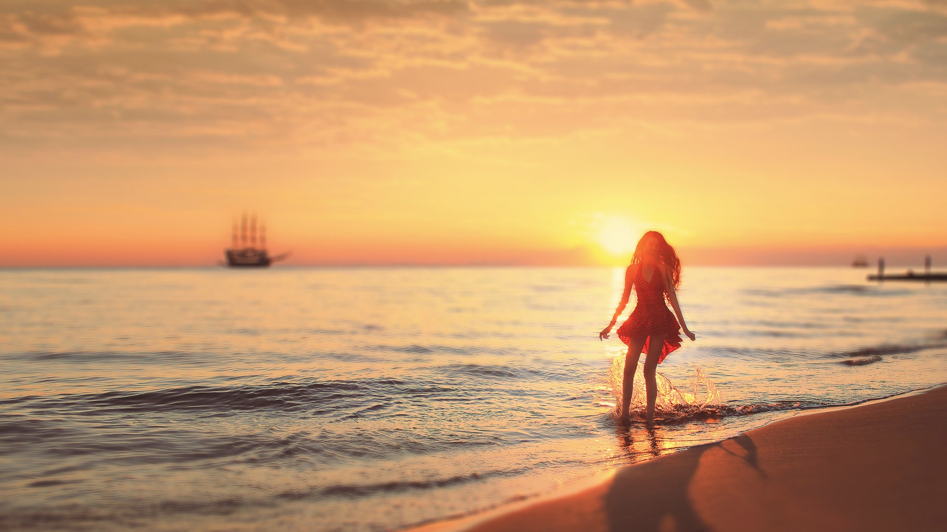PHOTOSHOP创意唯美壁纸,镜子中大海帆船与女孩的形体美头发艺术
