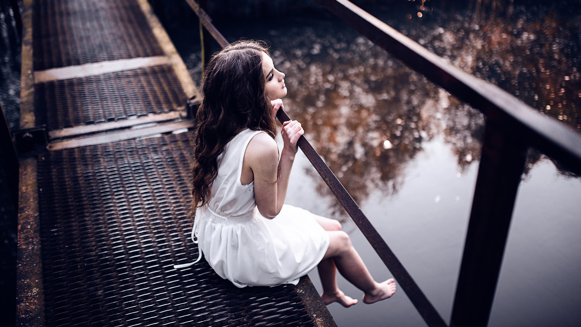 水边女孩与裙子的唯美免费电脑壁纸下载