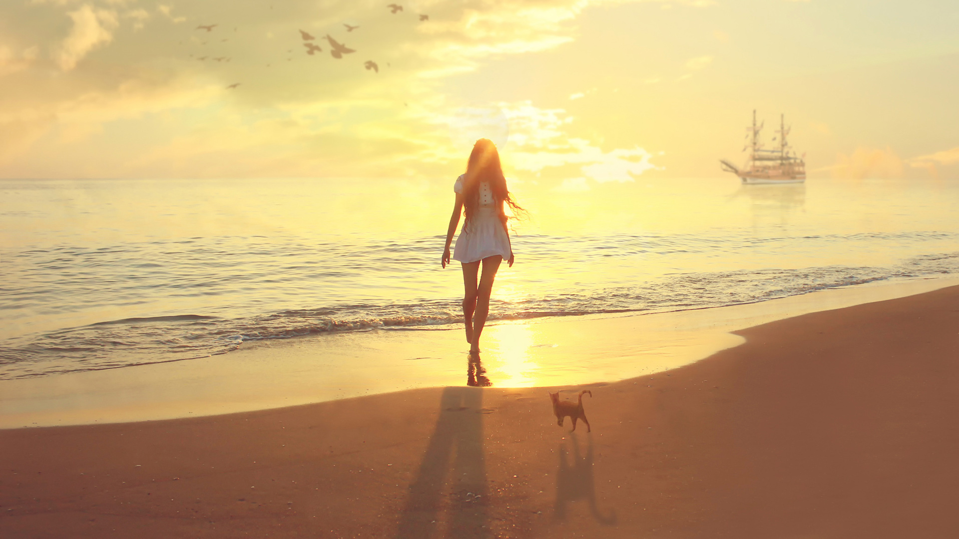 女孩心情光主题唯美免费电脑桌面壁纸下载