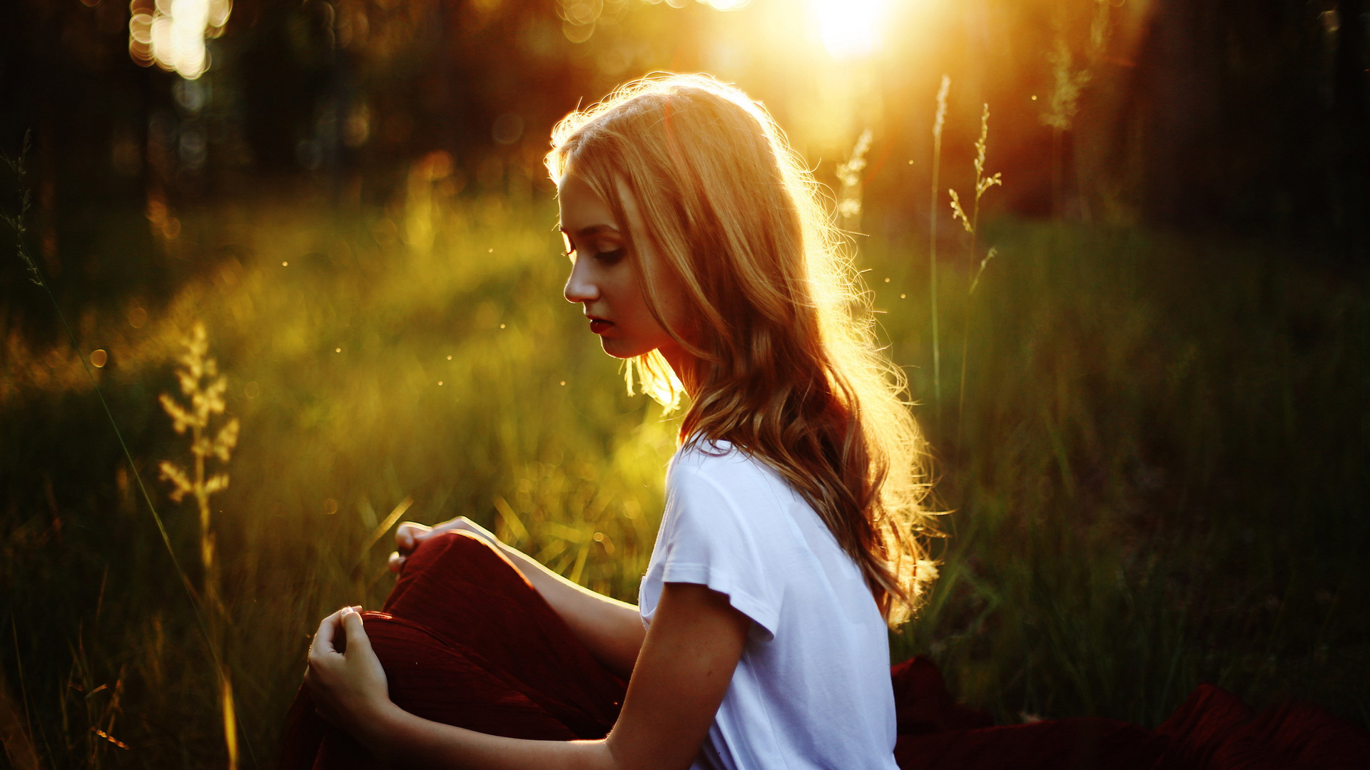夏天户外树林长发白衣女孩唯美免费电脑壁纸下载