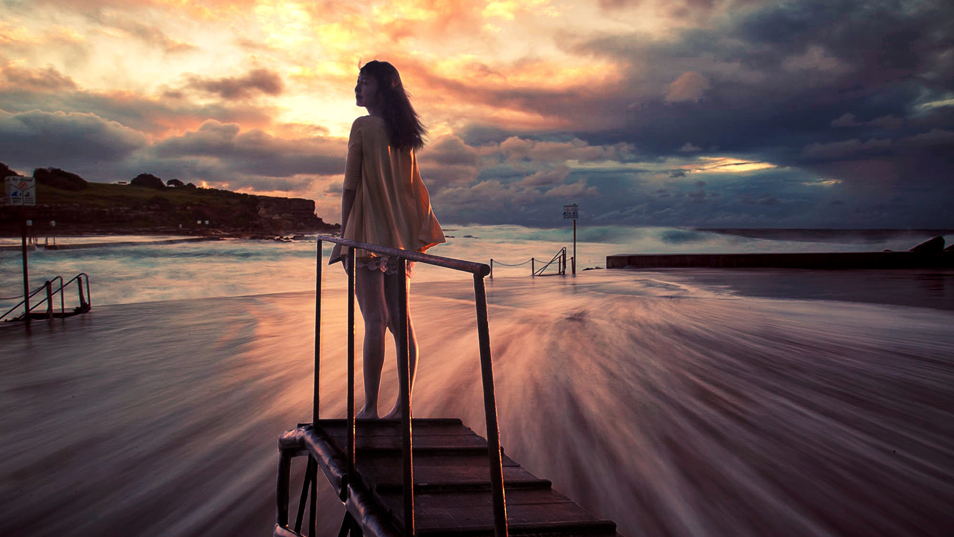 女孩白色裙子海边背影唯美意境免费电脑壁纸下载