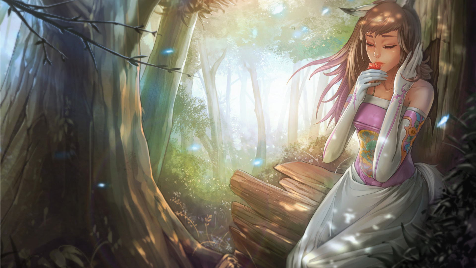 女孩美女与树小松鼠蝴蝶幻想主题唯美免费电脑壁纸下载