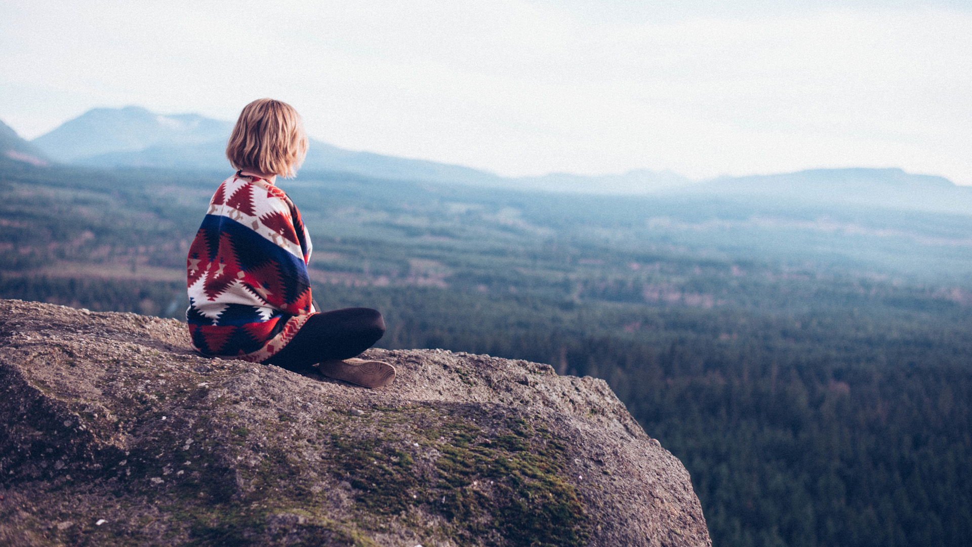 女孩海滩打坐冥想唯美免费电脑壁纸下载