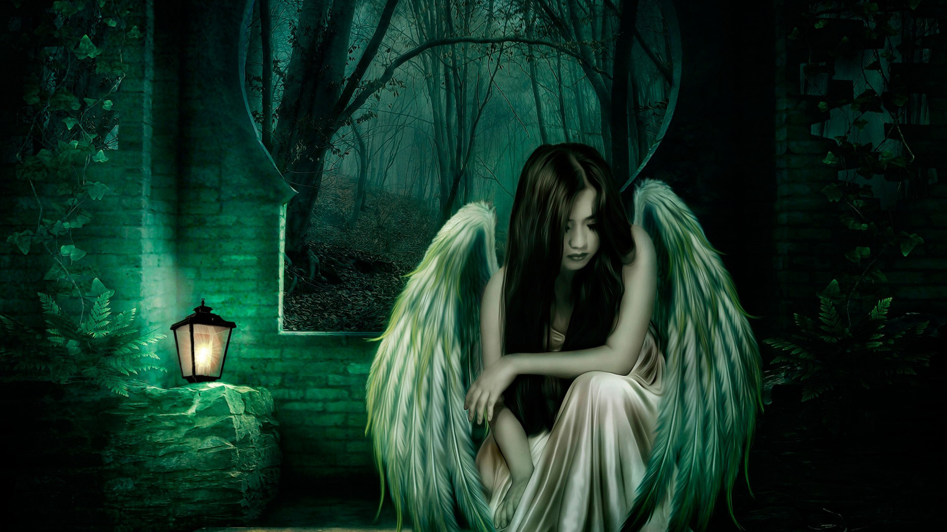 女孩礼服古建筑大门石像树唯美艺术电脑壁纸免费下载