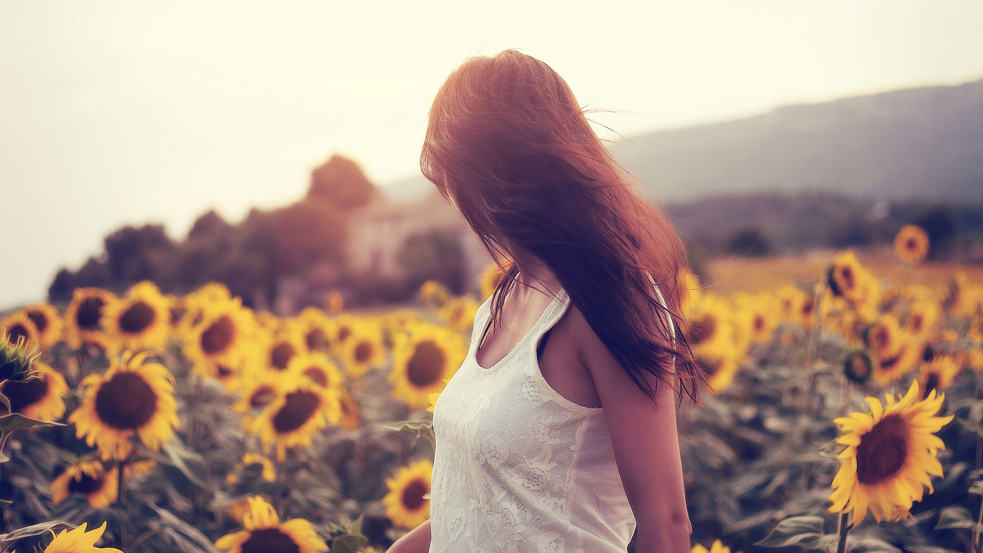 女孩穿漂亮白色礼服优美姿势花场薰衣草唯美免费电脑壁纸下载