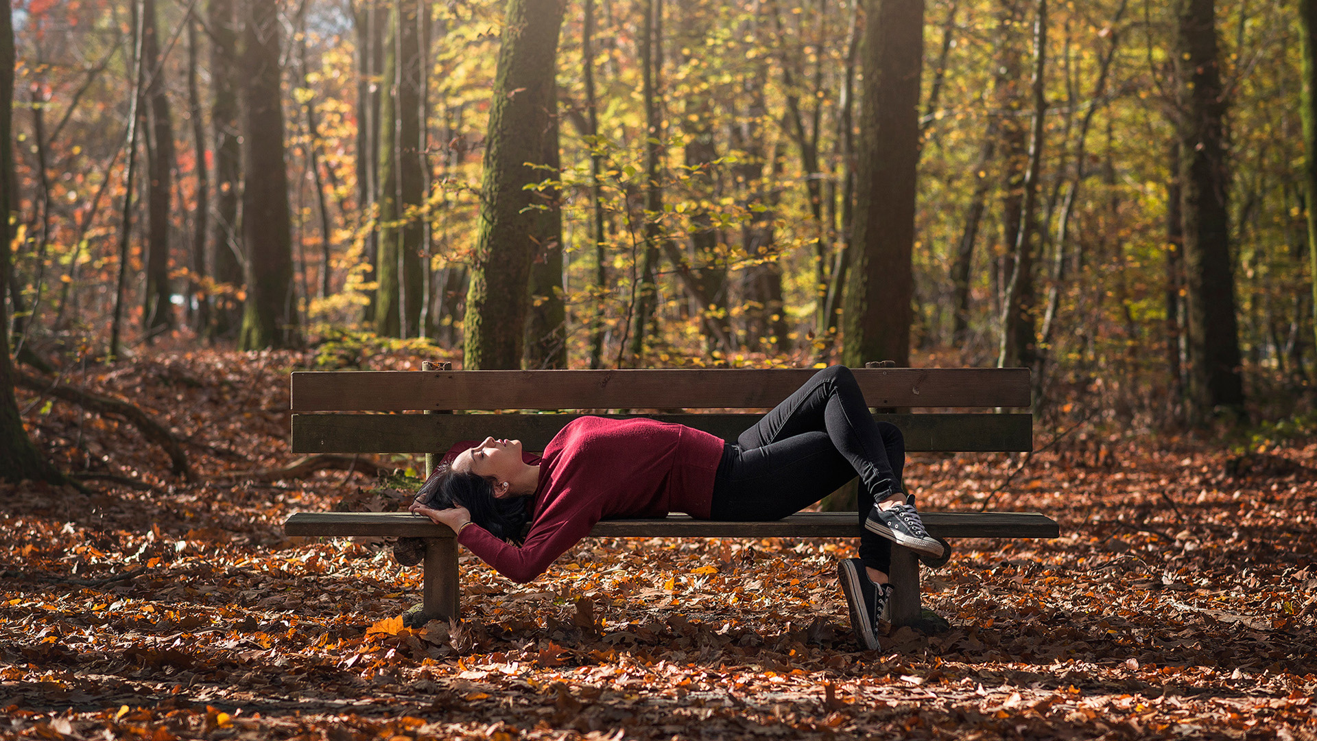 女孩闭眼穿白色裙子森林意境唯美免费电脑壁纸下载