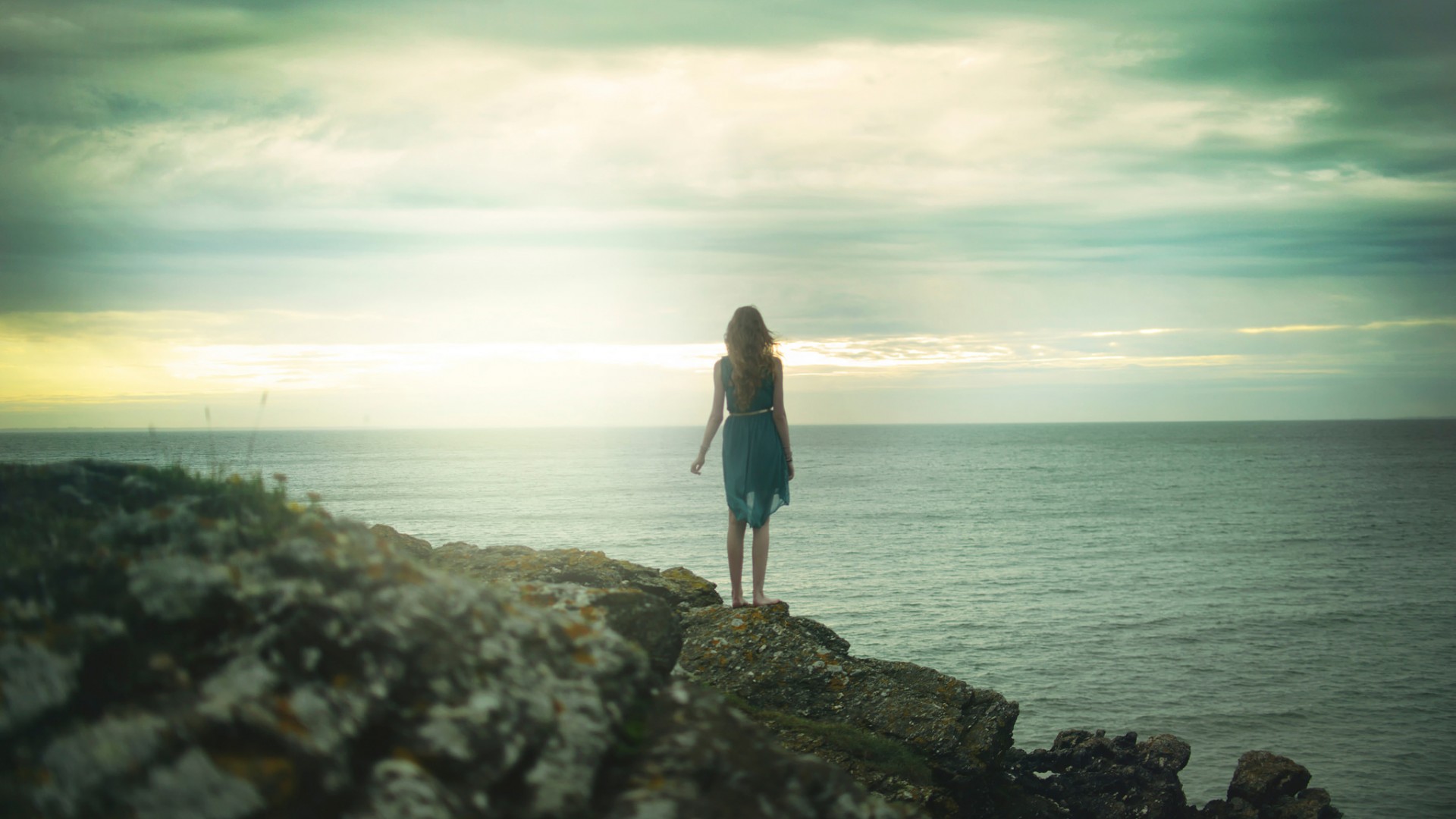 唯美小清新大海美女背影看海心情电脑壁纸免费下载