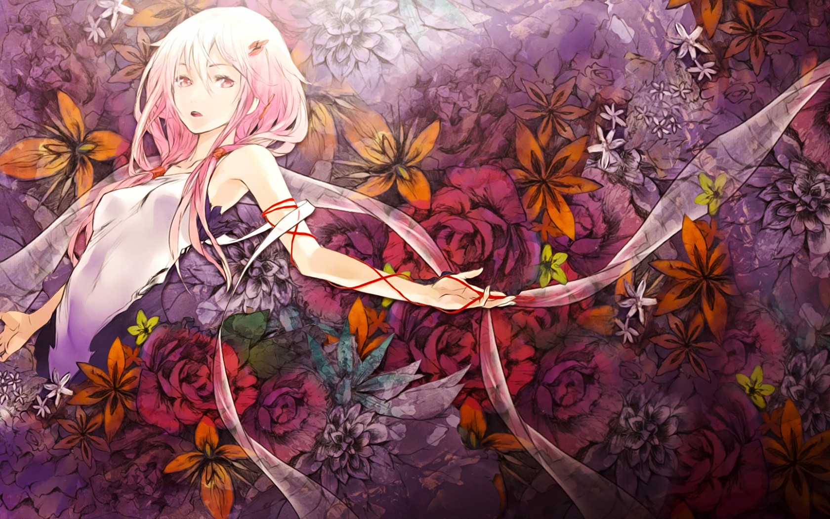 女孩脸映鲜花 唯美动漫人物免费电脑壁纸下载
