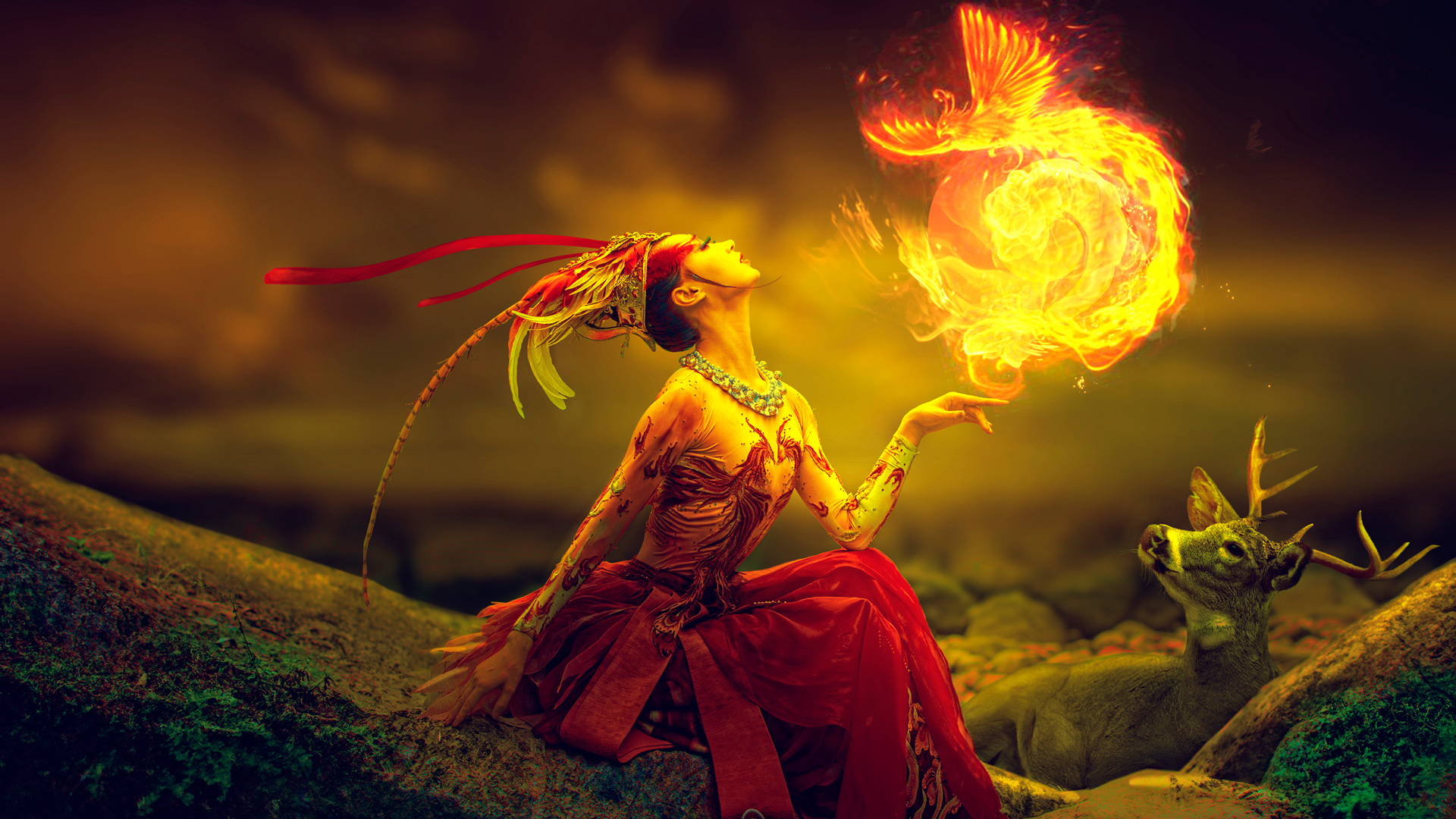 女孩与蝴蝶森林艺术唯美免费电脑壁纸下载