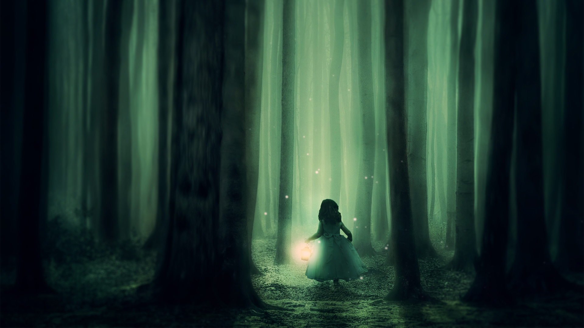 森林女孩与狼,卷发毛衣裙美腿唯美免费电脑壁纸下载