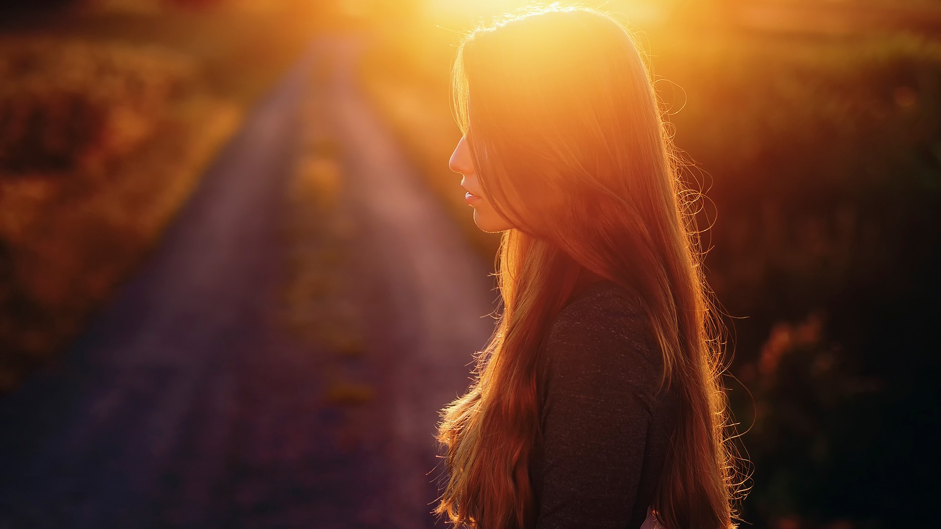 高挑长腿女孩越野背影 牛仔裤高跟鞋太阳唯美电脑壁纸免费下载