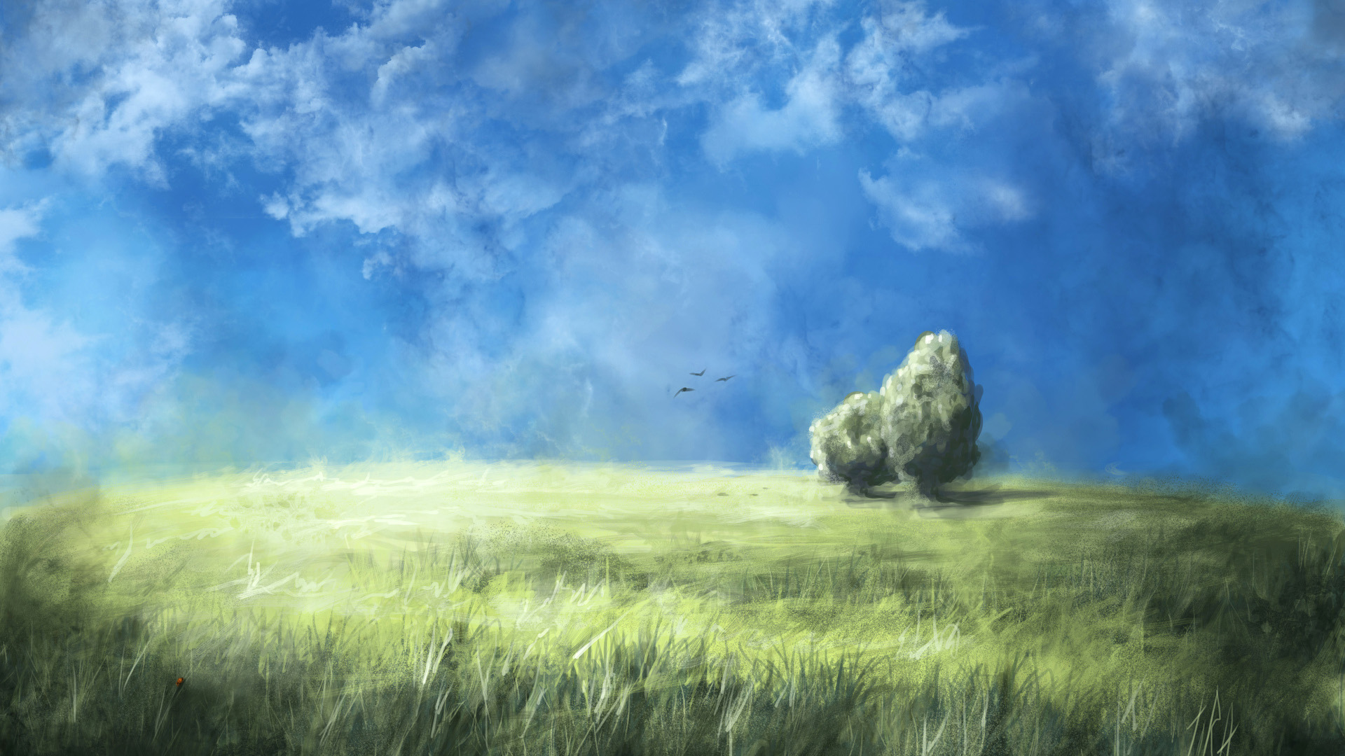 手绘绿色爱情主题唯美免费电脑壁纸高清下载