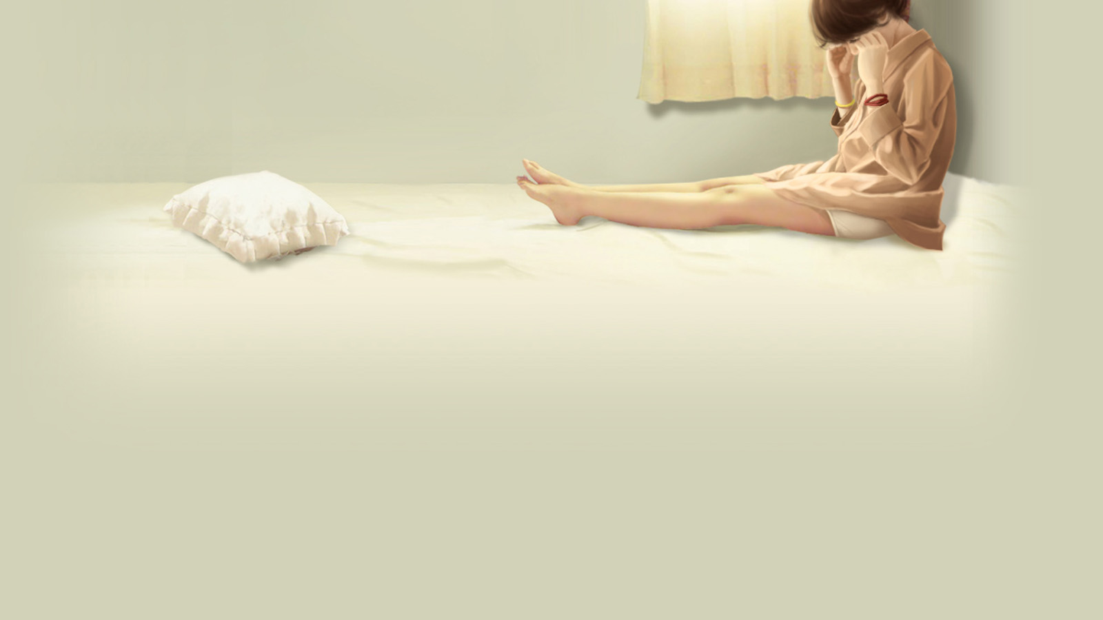 孤独女孩在海水边期望等待的天堂唯美电脑壁纸免费下载