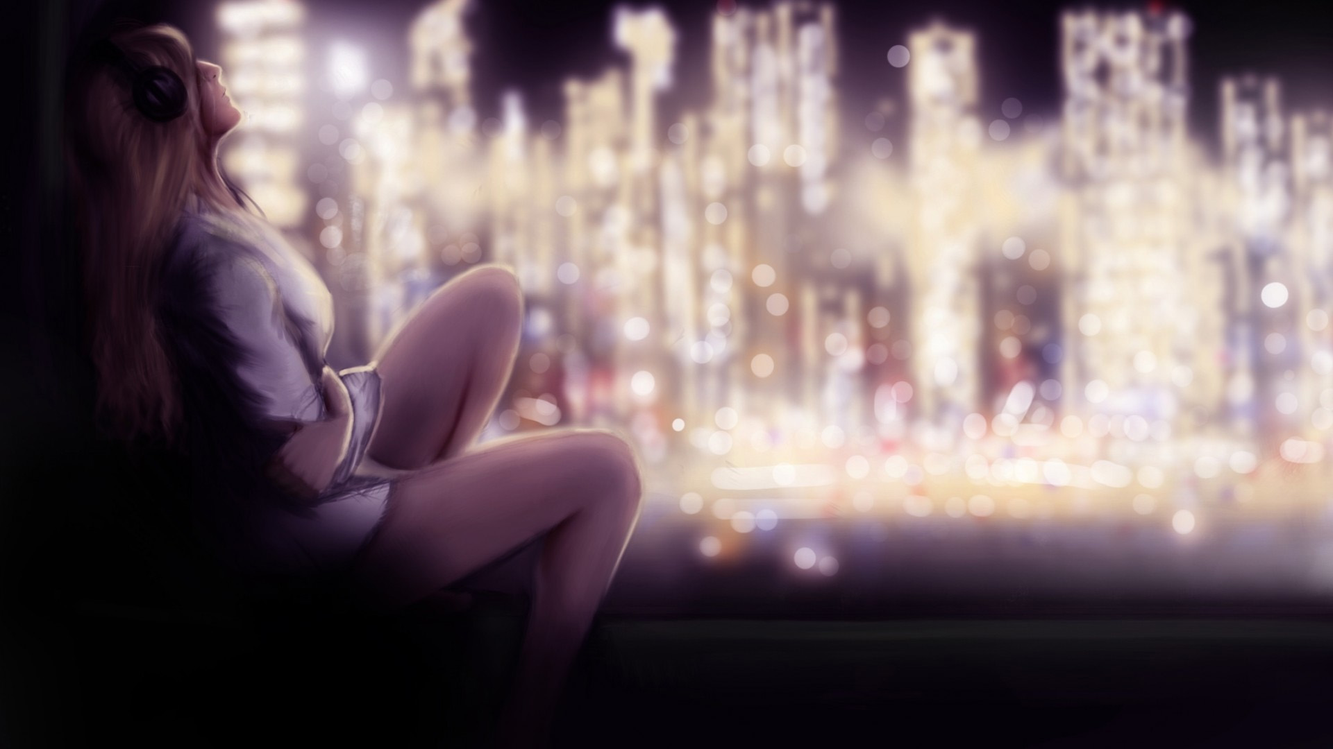 美女穿连衣裙坐看书的月光唯美意境电脑壁纸免费下载