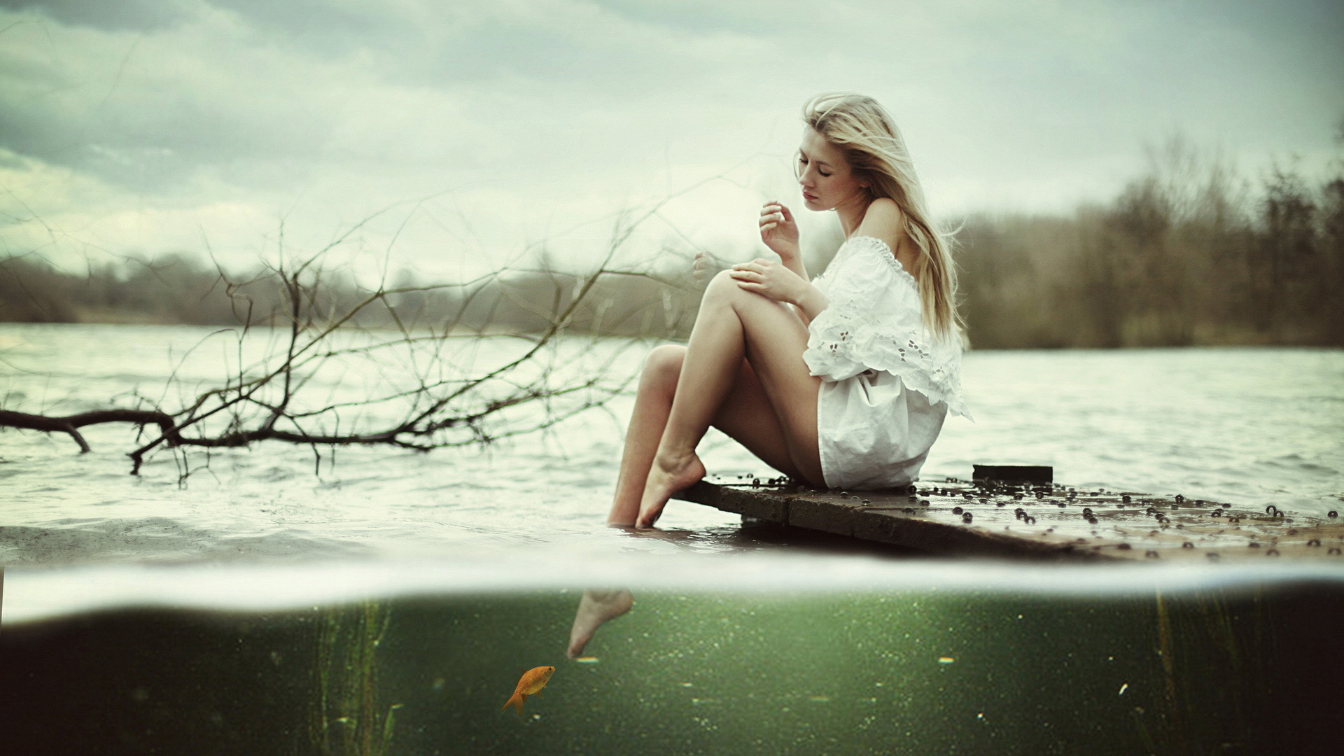 海底水下美女呼吸唯美意境免费电脑壁纸下载