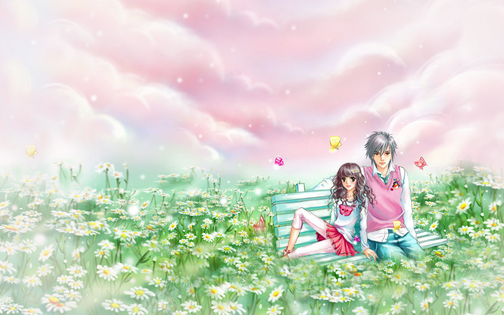 手绘女孩与做梦也想你唯美免费电脑壁纸下载