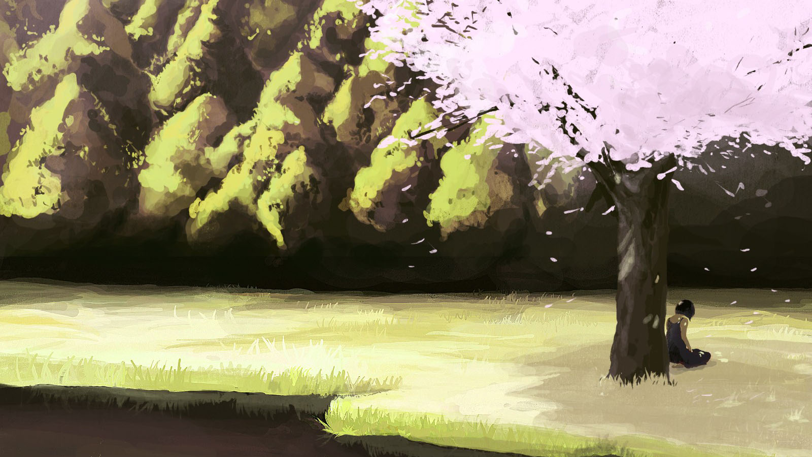 墨盘毛笔桃花中国风墨韵唯美免费电脑壁纸下载