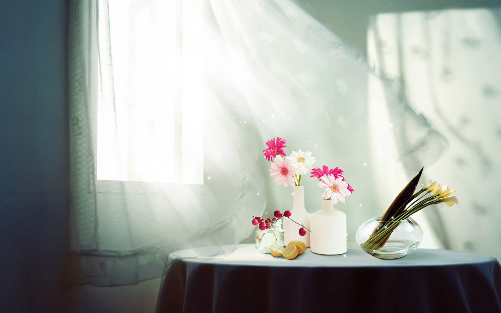 鲜花蜡烛石柱玫瑰园鸽子花环窗口唯美电脑壁纸免费下载