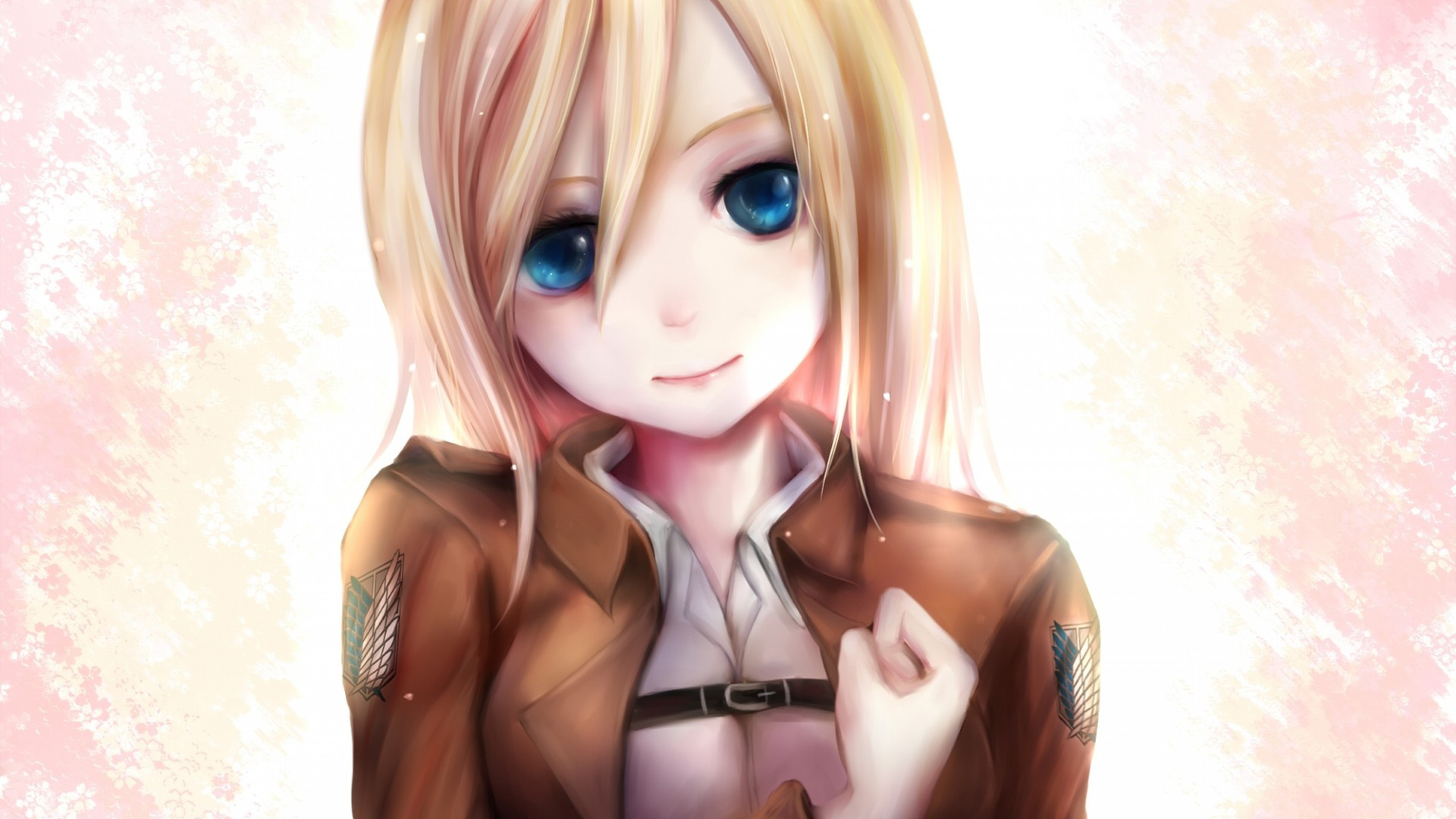 报纸墙背景金发碧眼高马尾女孩动漫免费电脑壁纸下载