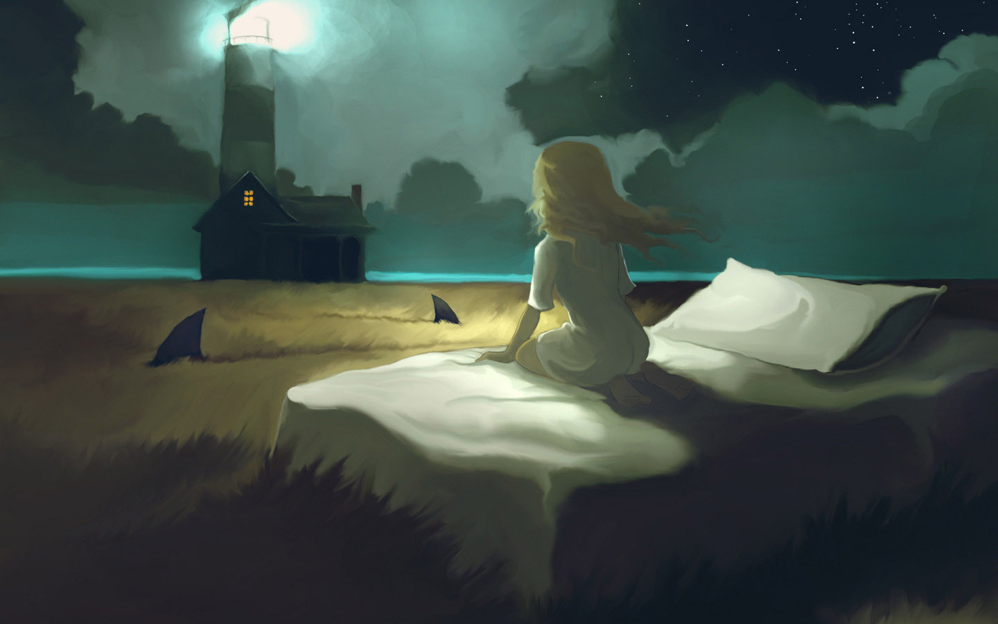 晚上树与灯的唯美艺术幻想电脑壁纸免费下载