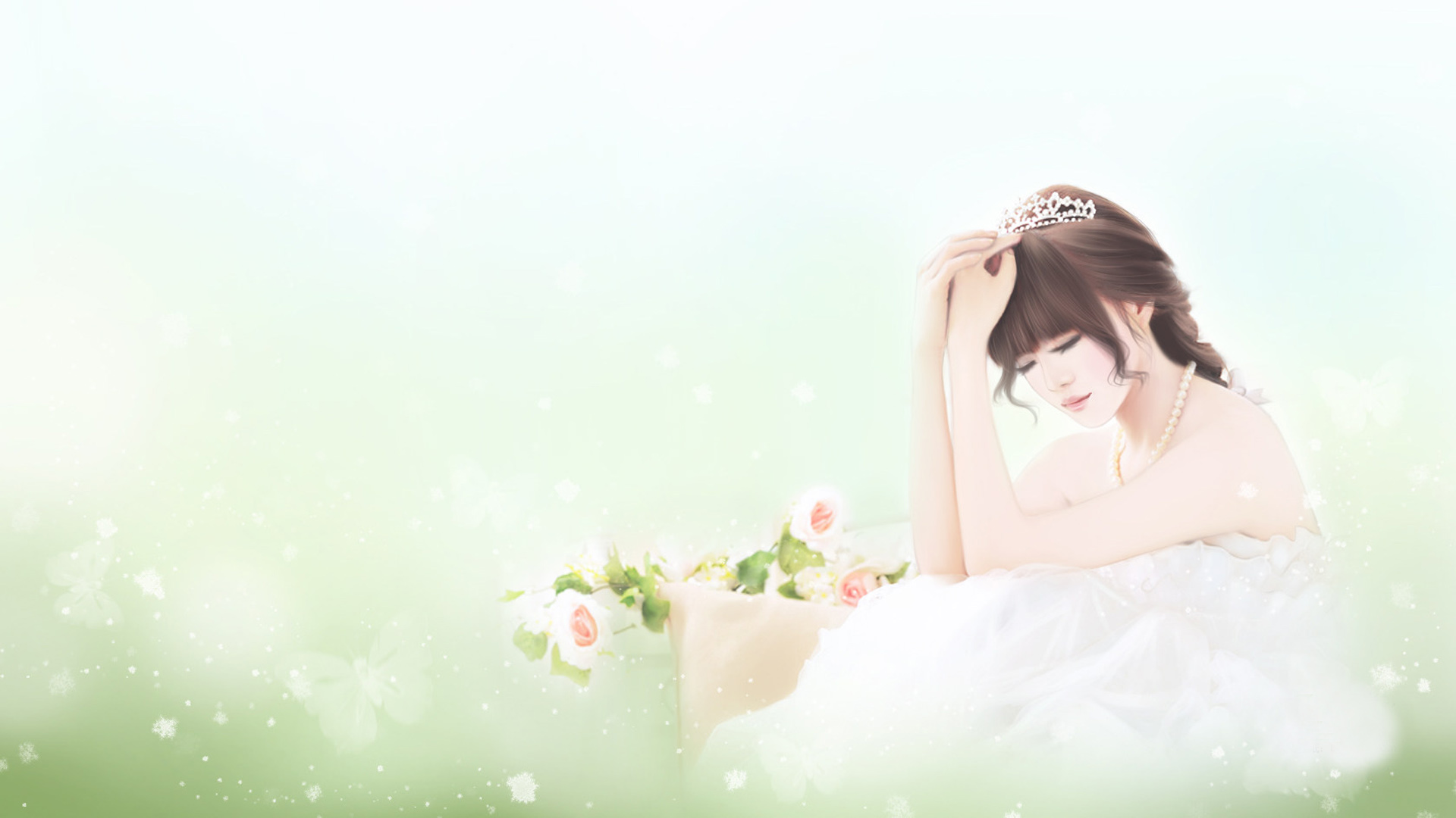 唯美女孩白色长裙礼服花卉火车主题免费电脑壁纸下载